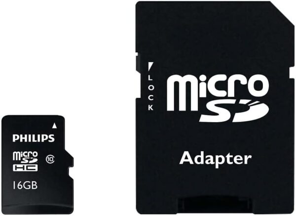 Carte Mémoire Philips Micro SD HC – Capacité de Stockage : 16 Go /32 GO– Facteur de forme : Micro SD HC – Vitesse Classe : Classe 10 – Vitesse de transmission ultra rapide – Taux de transfert : max vitesse de lecture 18 Mo/s, max