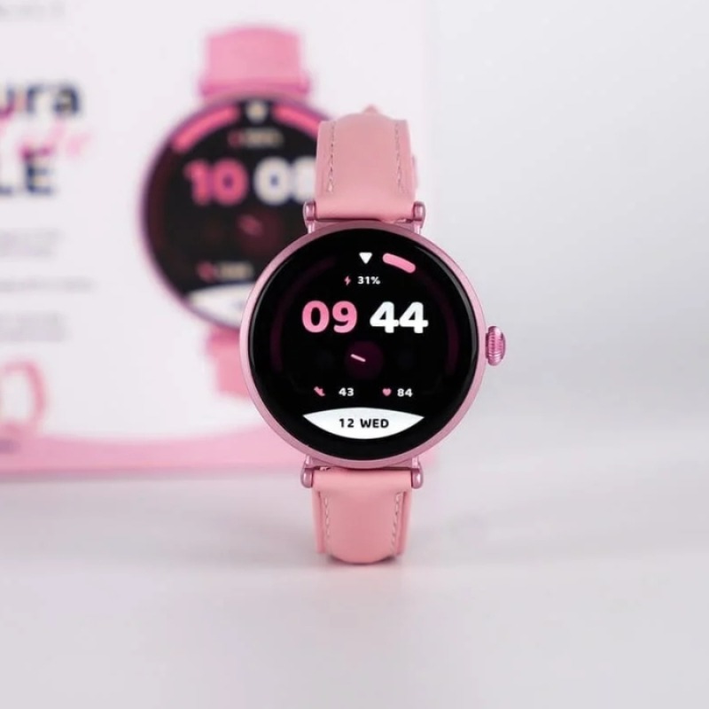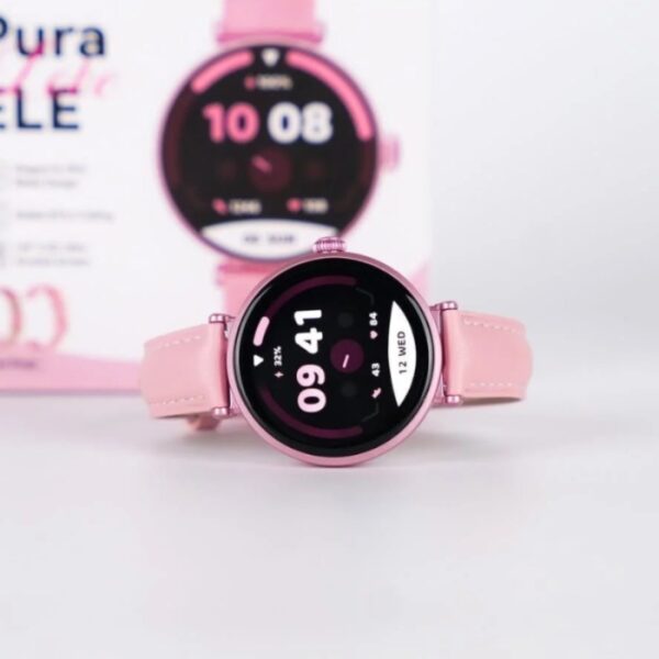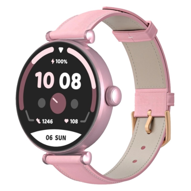 Montre Connectée Kieslect Pura ELE – Écran AMOLED de 1,19″ (390 × 390 px), luminosité jusqu’à 1000 nits, verre 2,5D pour un rendu net et fluide – Autonomie: batterie de 250 mAh, autonomie annoncée de 4 à 8 jours selon l’usage, recharge magnétique (~2 h pour une charge complète) – Compatibilité: Android (≥ 6.0) et iOS (≥ 9.0) – suivi du sommeil, fréquence cardiaque, entraînements de respiration, prévision météo, assistant vocal – Modes sportifs: plus de 100 sports intégrés pour suivre vos activités – Appels Bluetooth – Étanchéité: IP68 – Couleur : Rose – Garantie : 2ans