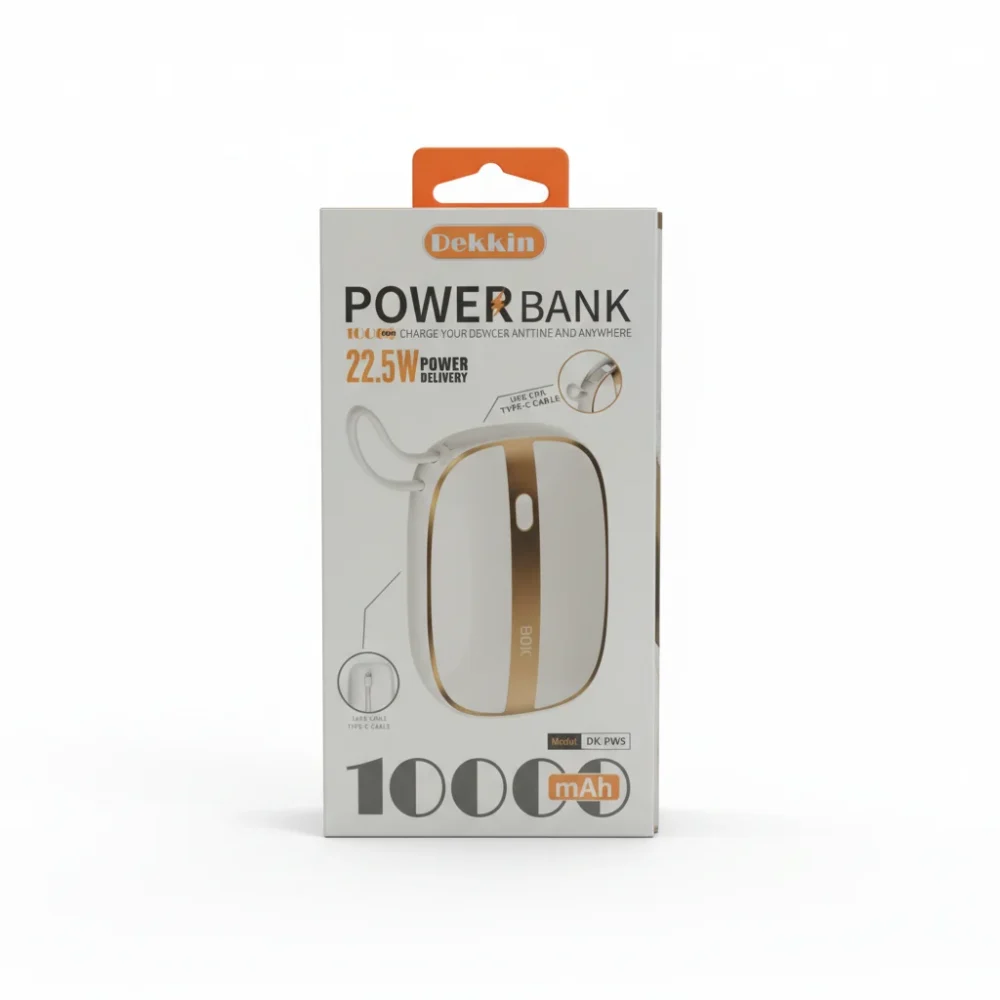 Power Bank DEKKIN – Capacité de Batterie: 10000 mAh – Entrée: Micro USB, USB-C – Sortie:LIGHTNING – Charge rapide de 22.5 W – Couleur: Blanc –