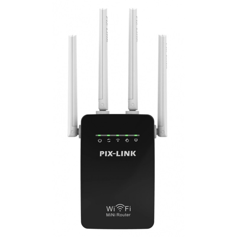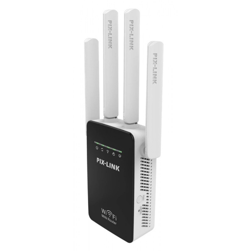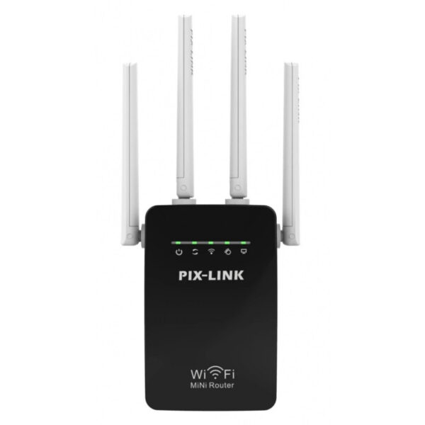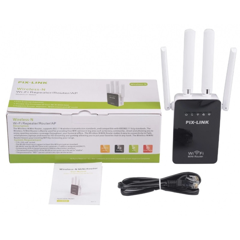 Répéteur Wifi Pix-Link LV-WR09 300 Mbps – Débit de transmission maximum de 300 Mbps – Normes sans fil-IEEE 802.11b/g/n – Quatre antennes externes – 2x Ports LAN/WAN 10/100 Mbps – Gamme de fréquences: 2.4-2.4835 GHz – Bouton WPS – Couleur: Noir Et Blanc