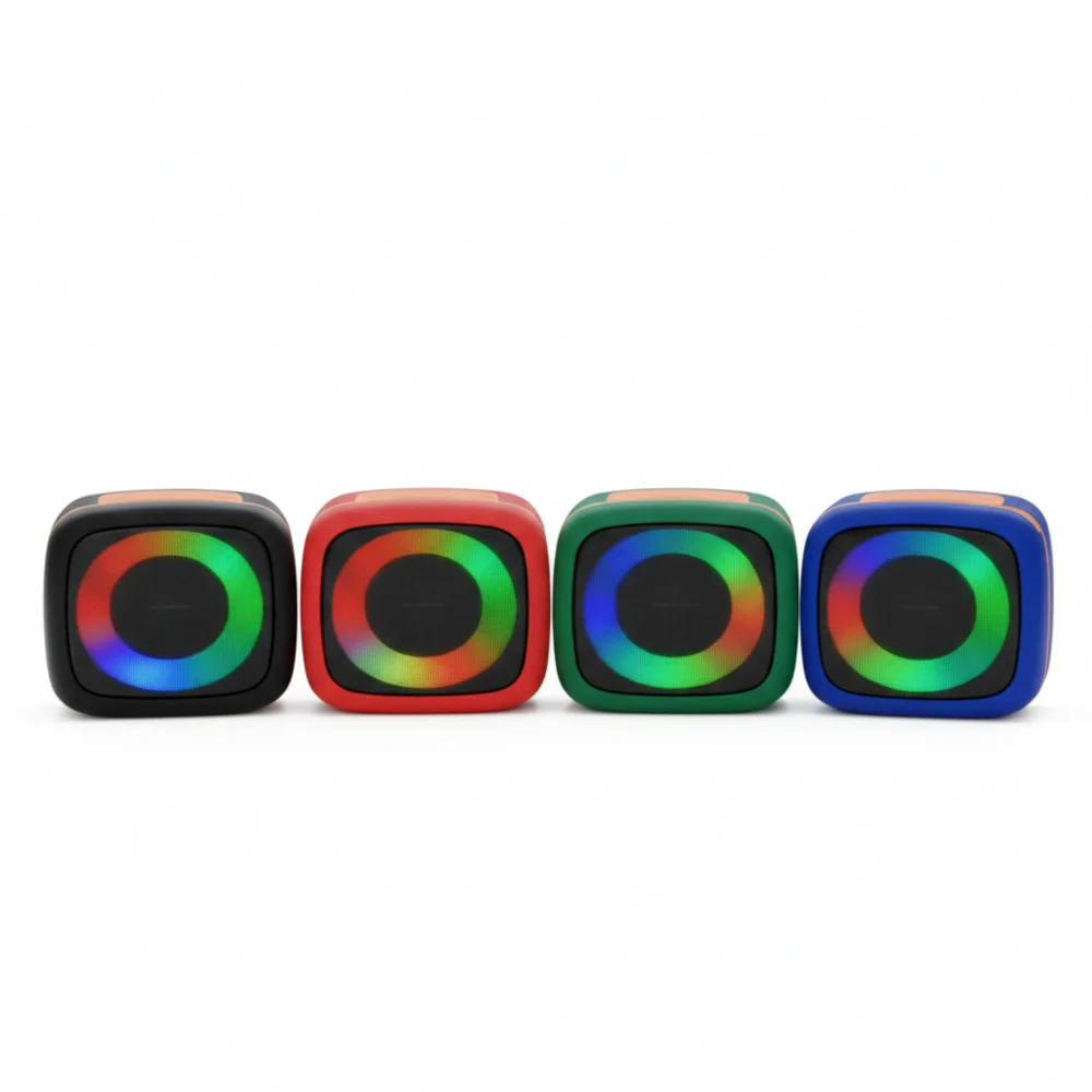 – Boutons de contrôle : lecture / pause, volume + / –, marche / arrêt, changement de lumière RGB
