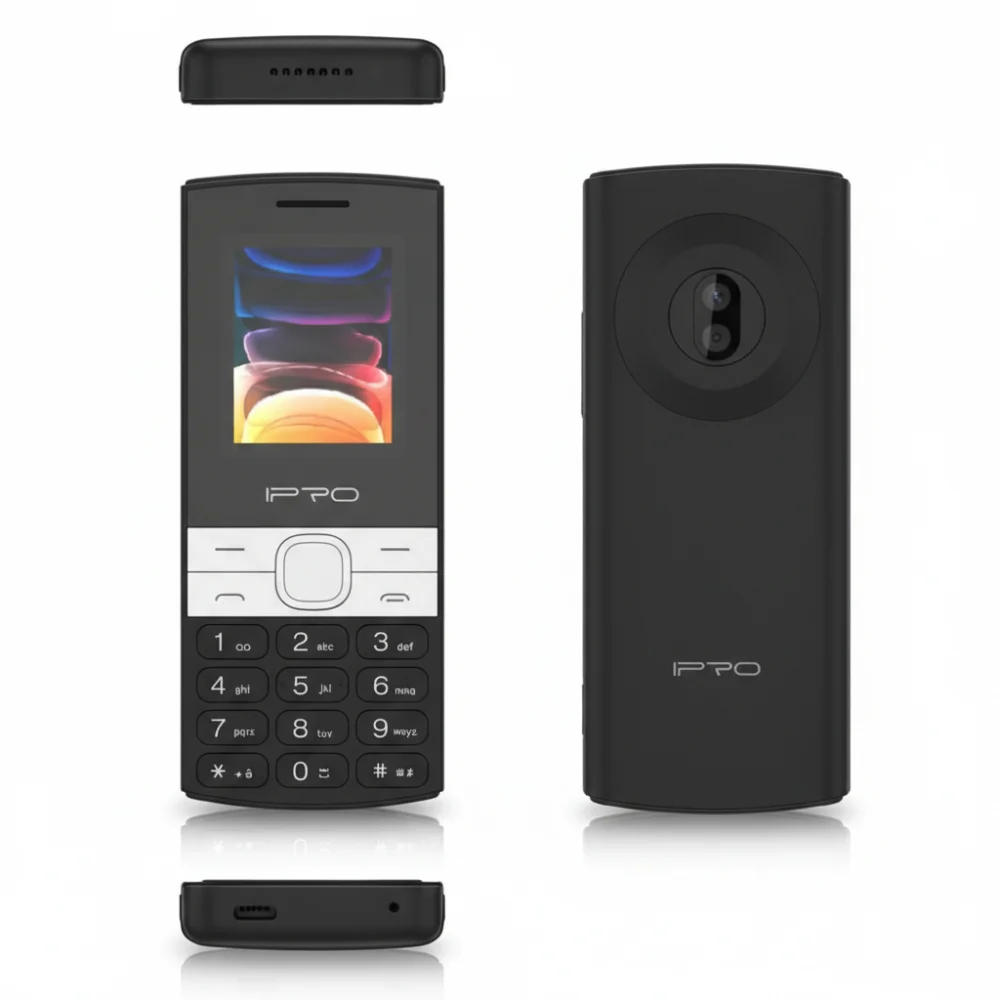 Double SIM – Écran 1.77″ (128 × 160) – Mémoire : 32 Mo RAM / 32 Mo stockage – Appareil photo : 0.08 MP avec LED – Batterie : 800 mAh (amovible) – Radio FM sans fil – MP3 / MP4 – Bluetooth – Torche – Carte microSD – Couleur : Noir – Garantie : 1 an